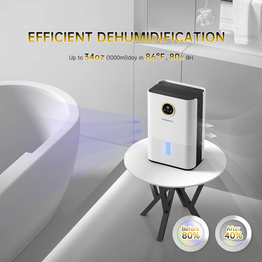 PTHRAOUTA Dehumidifier for Room for Home, 50 OZ Water Tank(1000 sq.ft) Dehumidifiers Safe Drainage Auto-off Odor Removal 2 Duak-Core Portable Small Dehumidifier for Basement Bathroom H10